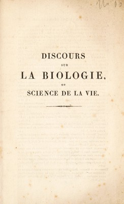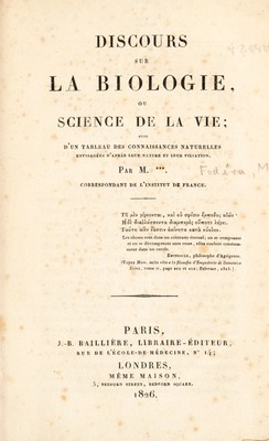 Discours sur la biologie, ou science de la vie; suivi d'un tableau des connaissances naturelles envisagées d'après leur nature et leur filiation / Par M.*** [i.e. M. Foderà].