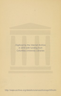 ![CONTENTS. CHAPTER I. SOUND AND VOICE. DEFINITION OF SOUND. FAGK Transmission of sound ] In air: in an attenuated atmosphere : vocal 'vibrations in hydrogen—Rate at which sound travels in different media —Sound-waves and Water-waves: parallel by Helmholtz —The Echo. Vibration 7 Production of simple and compound vibrations. sympathetic Resonance . - 8 Its phenomena and nature exemplified. Qualities of Sound as Distinguished by the Ear . 10 Music and noise: pitch, force, and timbre : simple and compound sounds: interference of sound-waves: Corti's organ—The siren ; its use in demonstrating the nature of sound ; the vocal organs act on the air similarly to it— Helmholtz's theory of timbre ; his resonators to ascertain the presence of overtones. Reed Instruments in They act on air like the siren—Different kinds of reeds; striking and free : woody, metallic, and membranous ; with and without tubes—Single and double reed instruments— The harmonium—The vocal reeds.](https://iiif.wellcomecollection.org/image/b2121847x_0011.jp2/full/800%2C/0/default.jpg)