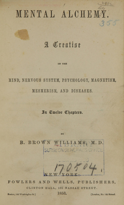 Mental alchemy : a treatise on the mind, nervous system, psychology, magnetism, mesmerism, and diseases in twelve chapters / by B. Brown Williams.