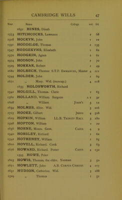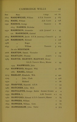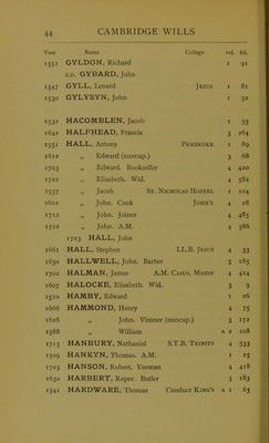 Calendar of wills proved in Vice-Chancellor's Court at Cambridge, 1501-1765.