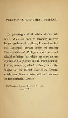 Credit: Haemorrhoids and prolapsus of the rectum : their pathology and treatment, with especial reference to the application of nitric acid, with a chapter on the painful ulcer of the rectum / by Henry Smith. Source: Wellcome Collection.