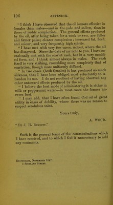 Credit: Treatise on the oleum jecoris aselli, or, cod liver oil, as a therapeutic agent in certain forms of gout, rheumatism, and scrofula : with an appendix for 1847 / by John Hughes Bennett. Source: Wellcome Collection.