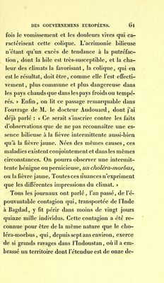 Credit: Guide sanitaire des gouvernemens européens, ou, Nouvelles recherches sur la fièvre jaune, et le cholera-morbus ... / par L.J.M. Robert. Source: Wellcome Collection.