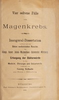 Vier seltene Fälle von Magenkrebs ... / vorgelegt von Georg Schade. Public Domain Mark. Source: Wellcome Collection.