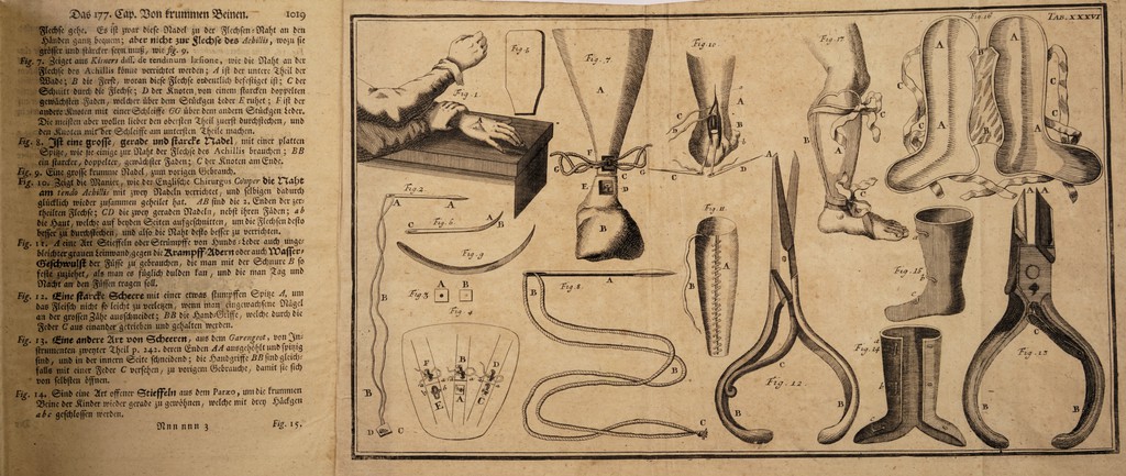 Credit: Chirurgie, in welcher alles, was zur Wund-Artzney gehöret, nach der neuesten und besten Art, gründlich abgehandelt, und in vielen Kuppffer-Tafeln die neu-erfundene und dienlichste Instrumente, nebst den bequemsten Handgriffen der chirurgischen Operationen und Bandagen deutlich vorgestellet werden / [Lorenz Heister]. Source: Wellcome Collection.