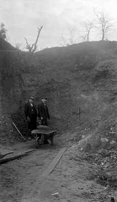 Credit: M0014945: Pleistocene deposits of the Thames valley: Belmont Park Road, section in gravel pit. Source: Wellcome Collection.