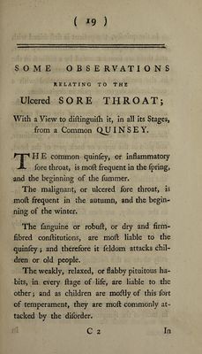 Credit: A letter to J. K-, M.D. [i.e. John Kelly] with an account of the case of Mr. T-n, of the city of O-d : To which are subjoined, some observations on the ulcered sore throat / By J. S-, M.D. [i.e. John Smith]. Source: Wellcome Collection.