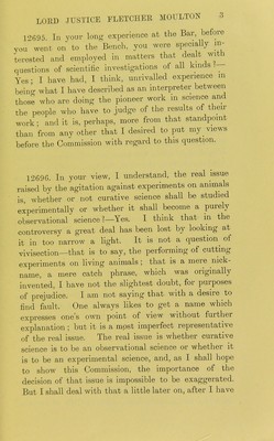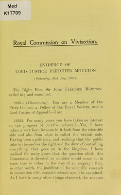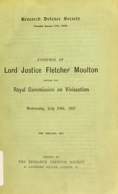 Evidence of Lord Justice Fletcher Moulton before the Royal Commission on vivisection, Wednesday, July 24th, 1907.