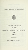 [Report 1963] / Medical Officer of Health, Birkenhead County Borough. Attribution 4.0 International (CC BY 4.0). Source: Wellcome Collection.