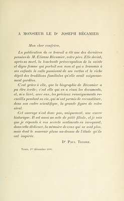 Récamier et ses contemporains, 1774-1852 : étude d'histoire de la médecine aux XVIIIe et XIXe siècles / par Paul Triaire.