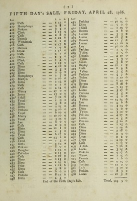Credit: A catalogue of the Portland Museum, lately the property of the Dutchess Dowager of Portland, deceased: which will be sold by auction, by Mr. Skinner and Co. on Monday the 24th of April, 1786 ... at her late dwelling-house, in Privy-garden, Whitehall / [by the Rev. J. Lightfoot]. Source: Wellcome Collection.