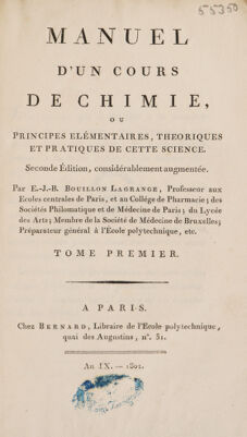 Credit: Manuel d'un cours de chimie, ou principes élémentaires, théoriques et pratiques. De cette science / [Edme Jean Baptiste Bouillon-Lagrange]. Source: Wellcome Collection.