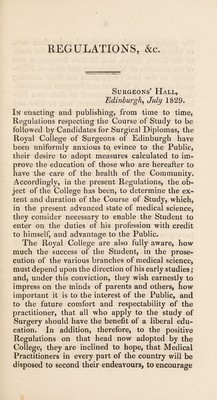 Credit: Regulations to be observed by candidates, previous to their being taken upon trials for obtaining diplomas from the Royal College of Surgeons of Edinburgh. Source: Wellcome Collection.