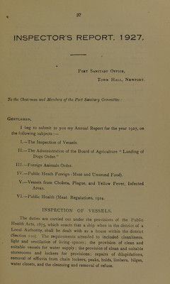 [Report 1927] / Medical Officer of Health, Newport (Gwent) Port Health Authority.