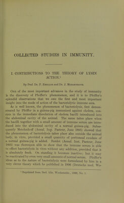 Collected studies in immunity / by Professor Paul Ehrlich ... and by his collaborators; with several new contributions, including a chapter written expressly for this edition by Professor Ehrlich; translated by Dr. Charles Bolduan.