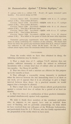 Immunisation of animals against infection by Vibrion septique ann Bacillus chauvœi / by H.R. Allen and T.J. Bosworth.