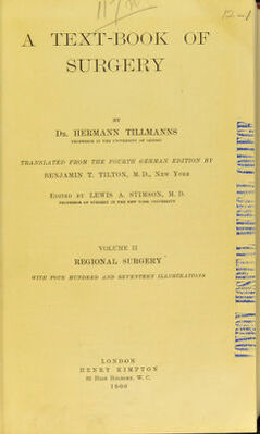 - Tillmanns, Hermann, 1844-1927. Lehrbuch der allgemeinen Chirurgie. English