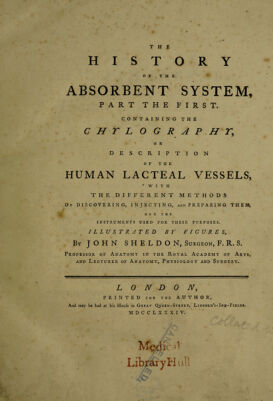 The history of the absorbent system, part the first. Containing the chylography, or description of the human lacteal vessels, with the different methods of discovering, injecting, and preparing them, and the instruments used for these purposes / Illustrated by figures. By John Sheldon.