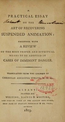 A practical essay on the art of recovering suspended animation : together with a review of the most proper and effectual means to be adopted in cases of imminent danger / translated from the German of Christian Augustus Struve, M.D. &c.