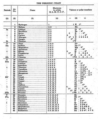 Credit: M0017791: Periodic Chain showing atomic numbers, electrons in orbits, and valencies of the elements, 1950: part 1. Source: Wellcome Collection.