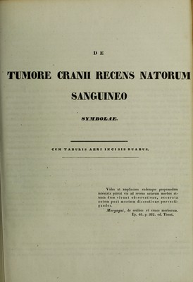 Credit: Eliae Henschel, medicinae et chirurgiae doctori ... die Januarii III. a MDCCCXXXVII summorum in arte medica honorum semisaecularia faustissimis ominibus celebranti omni, qua par est, observantia / gratulatur Joannes Augustus Burchard. Accedunt de tumore cranii recens natorum sanguineo symbolae. Source: Wellcome Collection.