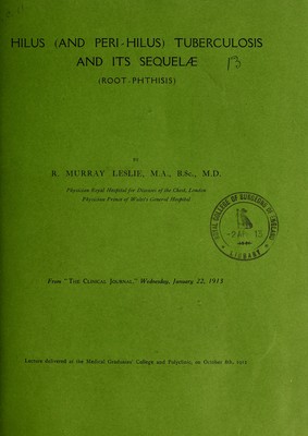 Hilus (and peri-hilus) tuberculosis and its sequelae (root-phthisis) / by R. Murray Leslie.