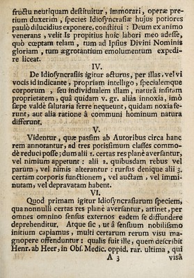 ![DISPUTATIO MEDICA INAUGURALIS 1 DE IDIOSYNCRASIE ^ V A M DEO PROPITIO I CONSENSU* ET AU1 0R1TATE AMP LISSI]} MEDICORUM IN ILLUSTRI AC AD. JULIA ORDINIS ■ . I Pr^side VIRO CLARISSIMO DnJFRIDERICO schraderc MED. DOCT. ETUSDEMQV E ET PHILOSOPHI NATURALIS PROFESS. PUBL, ET ORD. FA- CULTATIS MEDICA-: HODIE DECANO SPECTABILI DN. PATRONO, ET PRAECEPTORE SUO OM1 HONORIS» ET OBSERVANTIA: CULTU ATA- TEM PROSEQUENDO PRO LjCENTIA SUMMOS IN ARTE MEDICA HONORES, ATQl PRIVILEGIA DOCTORALIA RITE CON- | SEQVENDI PUBLICA:, ET SOLENNI DISQP7S1TI0NI SUBJICIT IN MAGNO JlILEO Dieterich Valentin Ucattw/ Medicus SeeKuianus, HORIS ANTE ET ROM Eli I D IA N IS A. d. xiix. Jun. A. MDCXCVI. HELM ESTADI Ty “ Typis Georg-Wolfgangi Hammiij Acad.TvDOffr.](https://iiif.wellcomecollection.org/image/b30768998_0001.jp2/full/800%2C/0/default.jpg)
