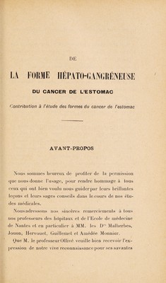 Credit: De la forme hépato-gangréneuse du cancer de l'estomac : contribution à l'étude des formes du cancer de l'estomac ... / par Guille-Desbuttes. Source: Wellcome Collection.