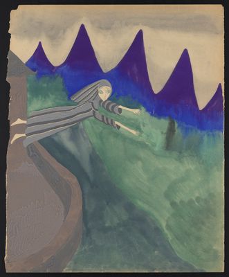 Credit: A nun in a mountainous landscape falling from a high ledge. Source: Wellcome Collection.