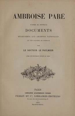 Ambroise Paré d'aprés de nouveaux documents découverts aux Archives nationales et des papiers de famille / [Claude Stephen Le Paulmier].