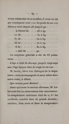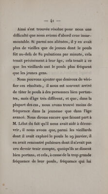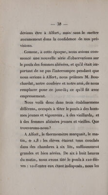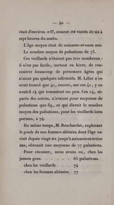 De la fréquence du pouls chez les aliénés; considérée dans ses rapports avec les saisons, la température atmosphérique, les phases de la lune, l'âge, etc. Réfutation de l'opinion admise sur le décroissement de la fréquence du pouls chez les vieillards. Note sur la pesanteur spécifique du cerveau des aliénés / Par F. Leuret et F. Mitivié.