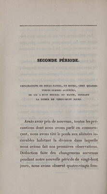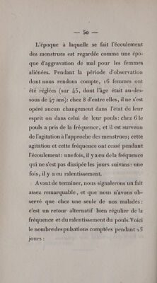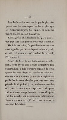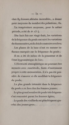 De la fréquence du pouls chez les aliénés; considérée dans ses rapports avec les saisons, la température atmosphérique, les phases de la lune, l'âge, etc. Réfutation de l'opinion admise sur le décroissement de la fréquence du pouls chez les vieillards. Note sur la pesanteur spécifique du cerveau des aliénés / Par F. Leuret et F. Mitivié.
