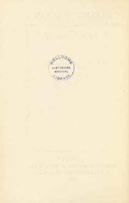 Roger Bacon, the father of experimental science and mediæval occultism / by H. Stanley Redgrove.