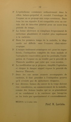 L'opération de Thiersch : ses indications, ses avantages et ses inconvénients : modification au procédé du Professeur Allemand : mémoire écrit pour le Congrès international médico-chirurgical de [sic] à Berlin du 4 au 9 août 1890 / par Rafael Lavista.
