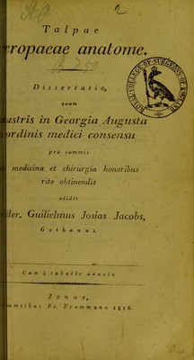 Talpae europaeae anatome : dissertatio ... / edidit Frider. Guilielmus Josias Jacobs.
