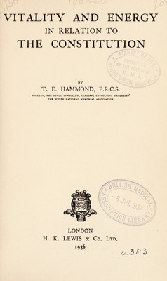 Vitality and energy in relation to the constitution / by T.E. Hammond.