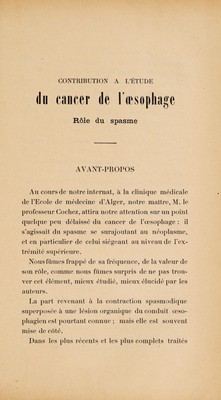 Contribution à l'étude du cancer de l'œsophage : role du spasme ... / par Fernand Gauthier.