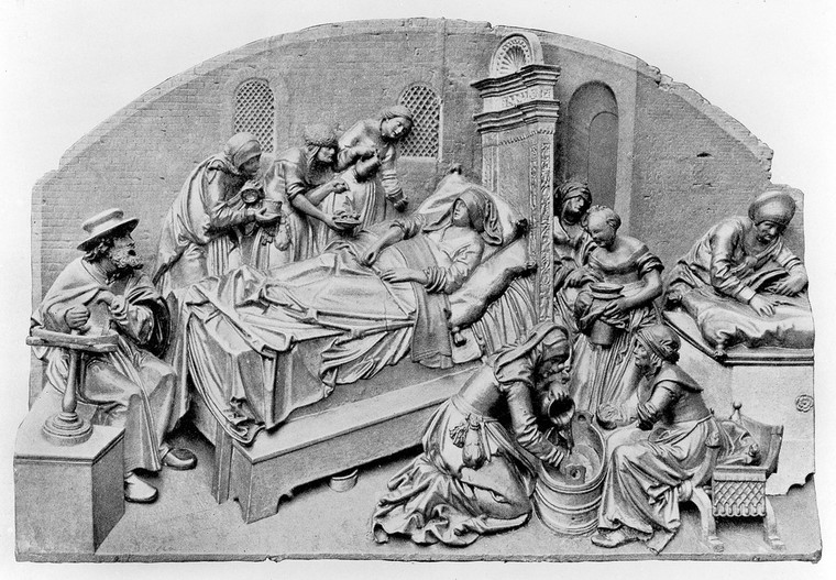 M0013496: Illustration of a lying-in-scene. In copyright. Source: Wellcome Collection.