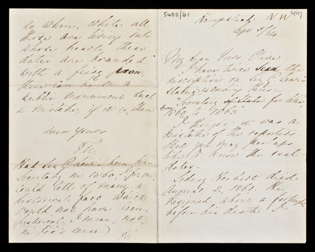 Credit: Letters to various correspondents 1864-1869. Source: Wellcome Collection.