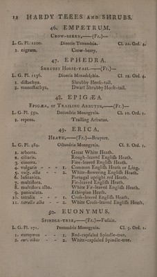 The English flora: or a catalogue of trees, shrubs, plants and fruits, natives as well as exotics, cultivated, for use or ornament, in the English nurseries, greenhouses and stoves, arranged according to the Linnæan system; with the Latin trivial, and common English names, and an English index referring to the Latin names. Also, a general catalogue of seeds ... [Flora Anglica] / By Richard Weston.