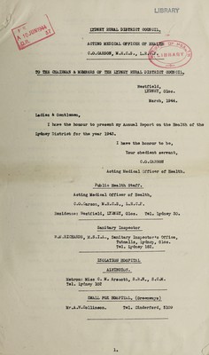Credit: [Report 1943] / Medical Officer of Health, Lydney R.D.C. Source: Wellcome Collection.