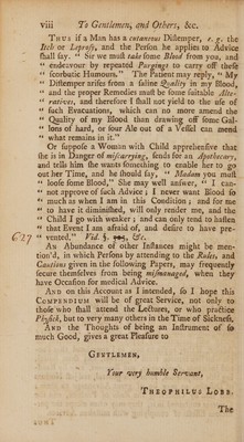 Credit: A compendium of the practice of physick: being the summary of a course of lectures on the various diseases incidental to human bodies .. Together with an account of the principles, or rules of practice in the administration of remedies ... Whereunto is added, a letter concerning the right manner of preparing persons for having the small pox favourably / [Theophilus Lobb]. Source: Wellcome Collection.