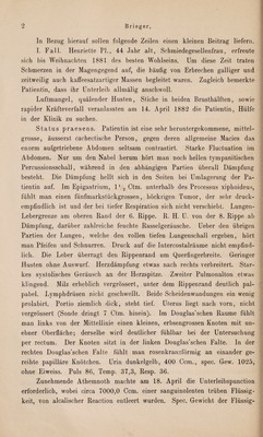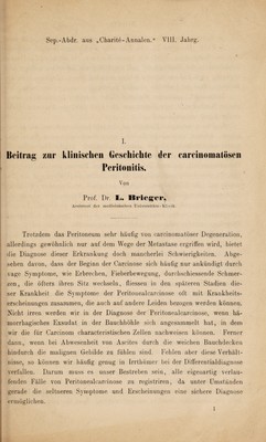 Beitrag zur klinischen Geschichte der carcinomatösen Peritonitis / von L. Brieger.