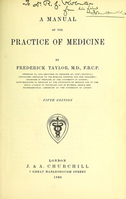 Credit: A manual of the practice of medicine / by Frederick Taylor. Source: Wellcome Collection.