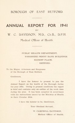 Credit: [Report 1941] / Medical Officer of Health, East Retford U.D.C. / Borough. Source: Wellcome Collection.