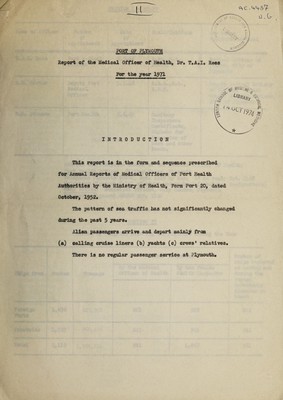 [Report 1971] / Medical Officer of Health, Plymouth Port Health Authority.
