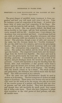 Experience in water-cure : a familiar exposition of the principles and results of water treatment in the cure of acute and chronic diseases : illustrated by numerous cases in the practice of the author : with an explanation of water-cure processes, advice on diet and regimen, and particular directions to women in the treatment of female diseases, water treatment in childbirth, and the diseases of infancy / by Mary S. Gove Nichols.