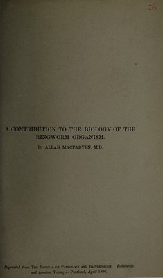 A contribution to the biology of the ringworm organism / by Allan Macfadyen, M.D., Lecturer on bacteriology, British Institute of Preventive Medicine.