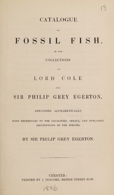 Catalogue of fossil fish in the collections of Lord Cole and Sir Philip Grey Egerton / [Sir Philip de Malpas Grey Egerton].
