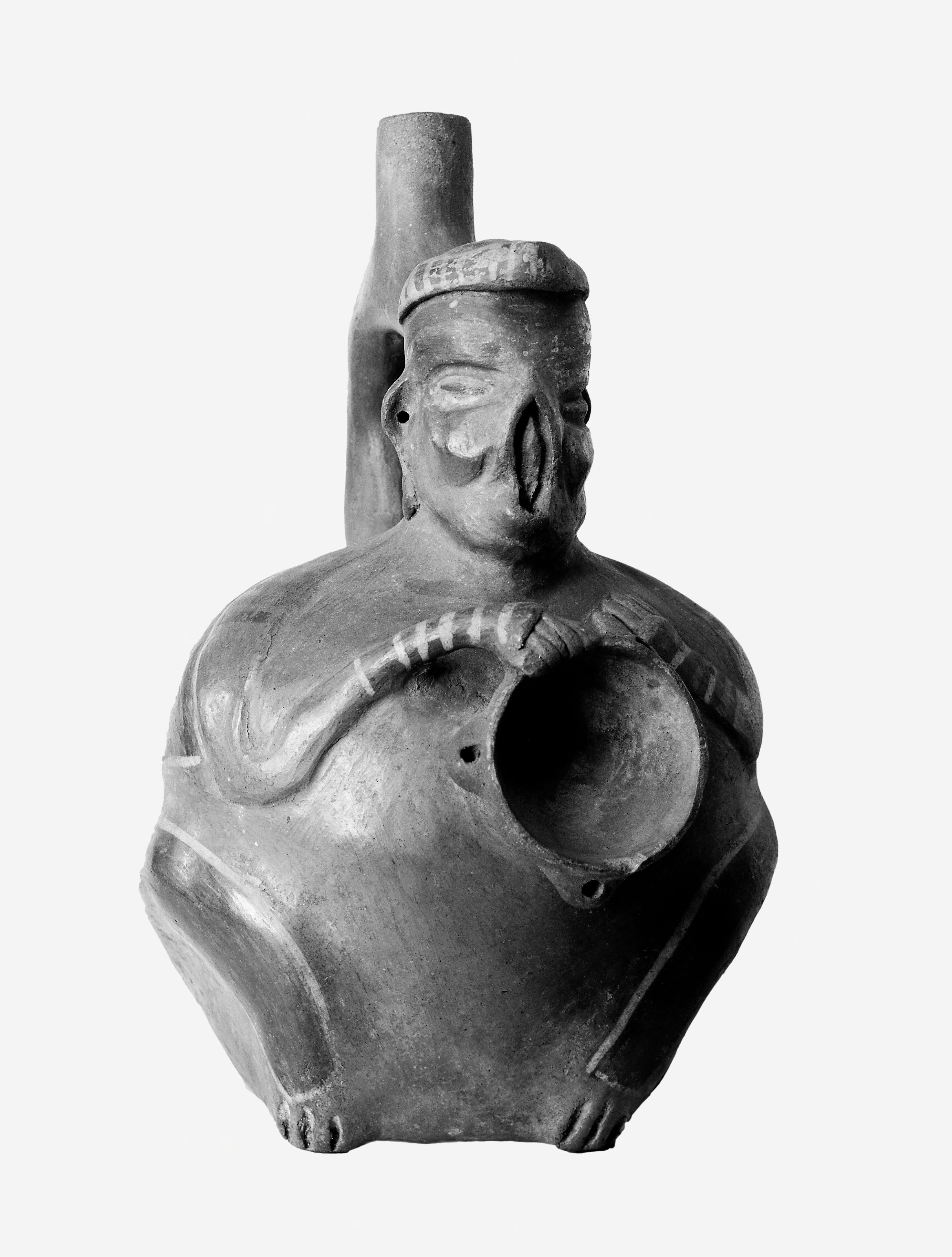 M0009470: Peruvian vessel shaped as a beggar holding a bowl. In copyright. Source: Wellcome Collection.